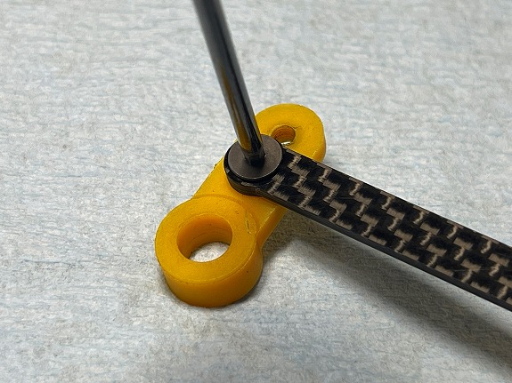 YZ834Bのピアノ線のステアリングパーツはガタが大きいのでカーボンパーツで作りました。